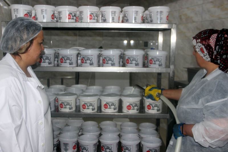 Kayseri’nin Hacılar ilçesinde iki kadın, günde 1 ton manda sütü işleyerek yoğurt, peynir ve kaymak üretiyor.