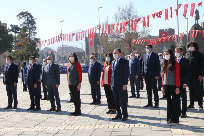İl Milli Eğitim Müdürü Bilal Yılmaz Çandıroğlu’nun Atatürk Anıtı’na çelenk bırakmasının ardından saygı duruşunda bulunuldu ve İstiklal Marşı’nın okundu.