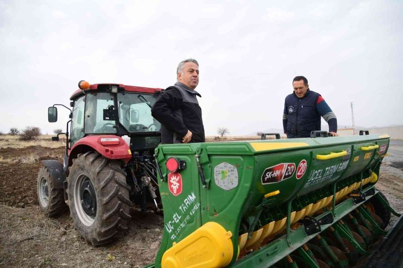 Kayseri’de atıl tarım arazilerin üretime kazandırılması, tarım alanlarının ve üretimin arttırılması, nadas alanların daraltılması ve ürün deseninin çoğaltılması amacıyla Tarım ve Orman Bakanlığı tarafından yüzde 75 hibeli ’Tohumdan Sofraya Ekmeklik Buğday’ Projesi kapsamında Kocasinan ilçesinde 53 üreticiye 20 ton ekmeklik buğday tohumu dağıtıldı. İl Tarım ve Orman Müdürü Mustafa Şahin de, ilçeye bağlı Emmiler Mahallesi’nde bulunan tarım işletmesini ziyaret ederek, tohum ekimi yapan üreticiye eşlik etti.