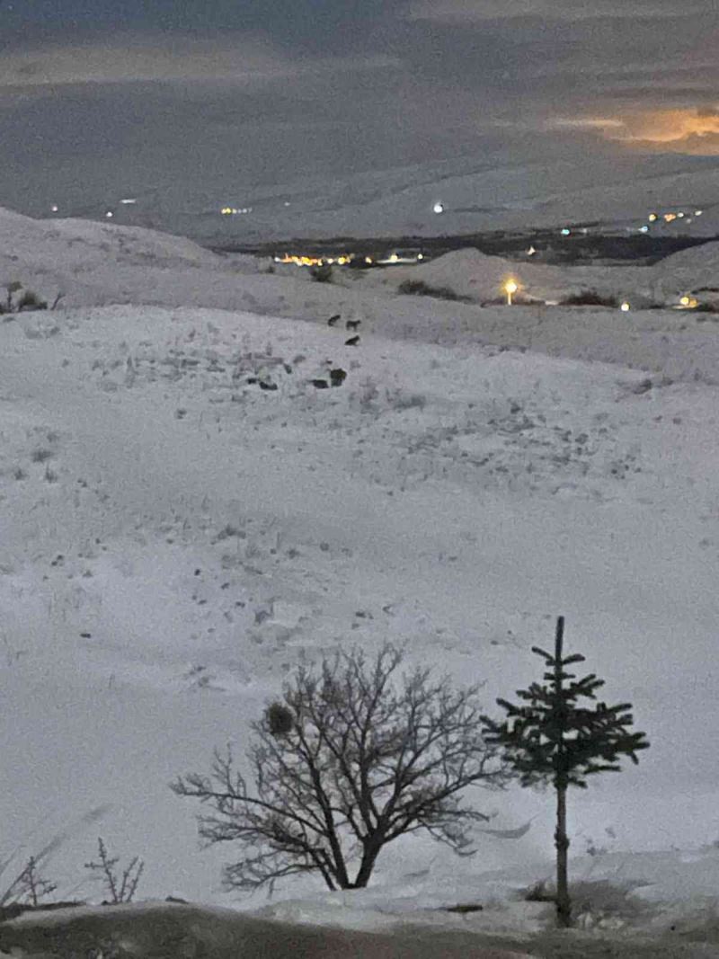 İlçeye bağlı İğdeli Mahallesi’nde meydana gelen olayda, aç kalan kurtlar mahallenin yakınına kadar indi. Vatandaşlar tarafından görüntülenen kurtlar, bir süre etrafı gözlerken daha sonra gözden kayboldu. O anlar saniye saniye görüntülenirken, vatandaşlar da yetkililerden kurtlara yem verilmesini istedi.