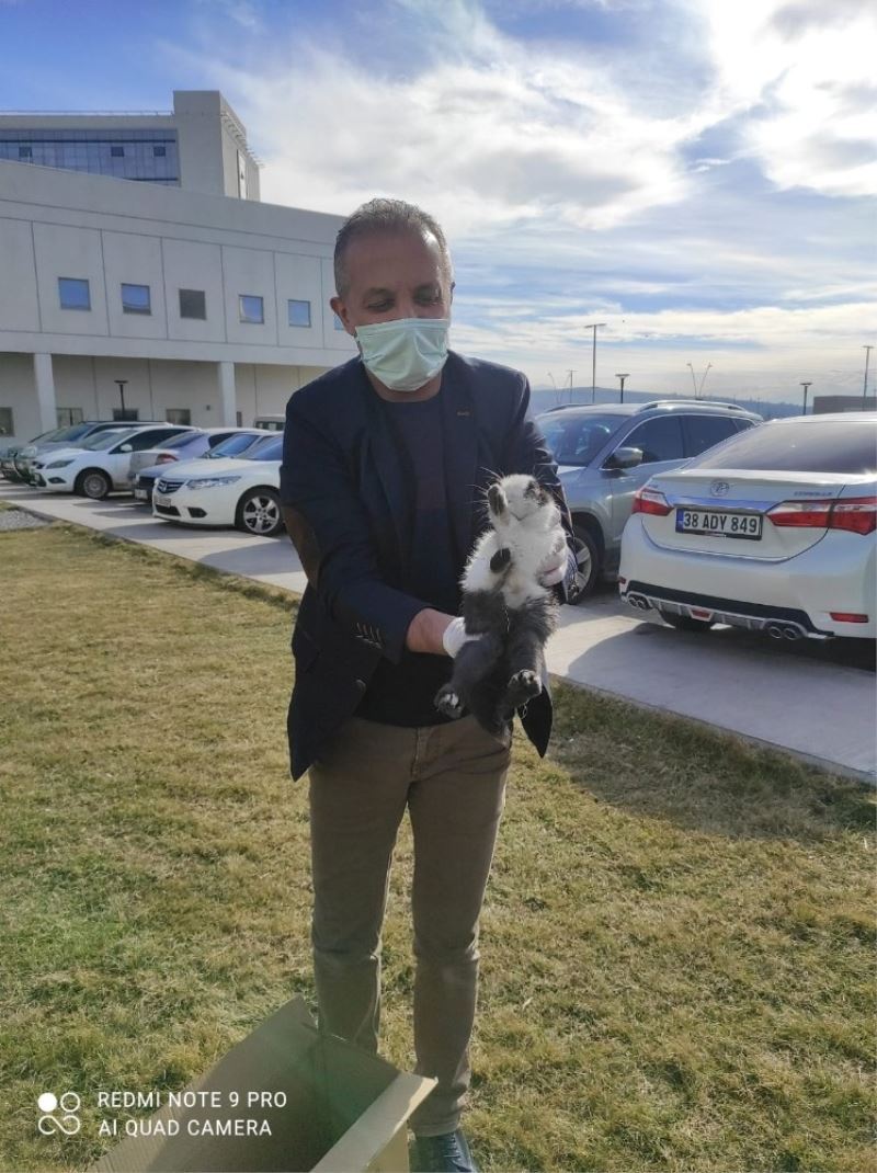 Kayseri Şehir Hastanesi görevlisi, aç kalarak araçların arasında dolaşan tavşanı ezilmekten kurtardı.