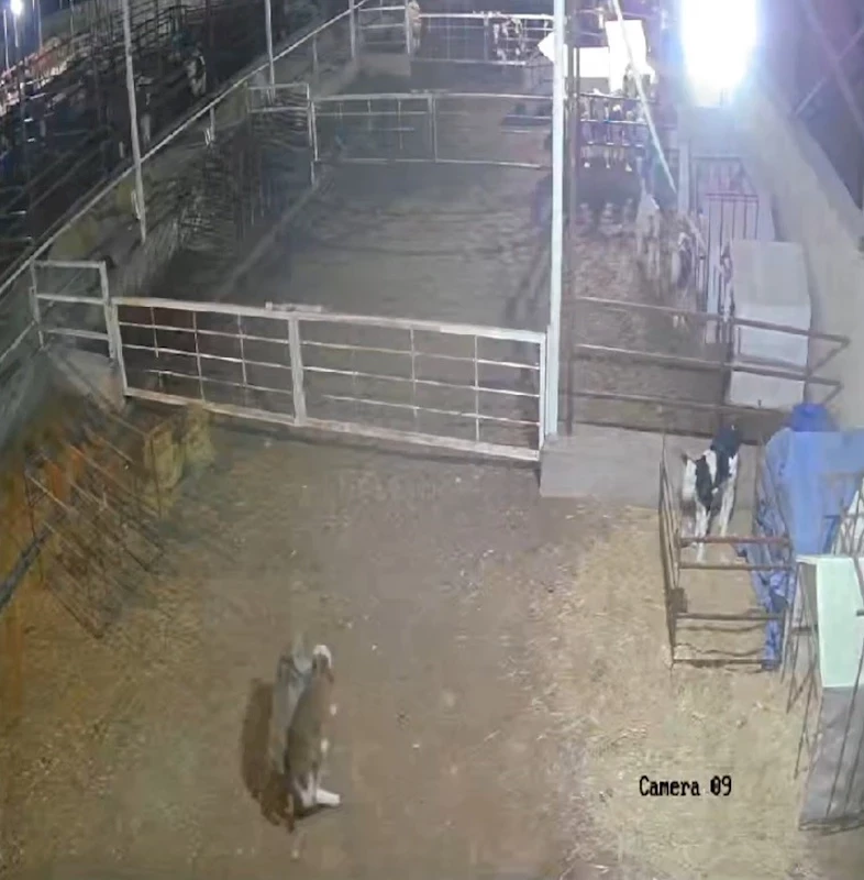 Yaşanan olaylar çiftliğin güvenlik kamerasına yansıdı.