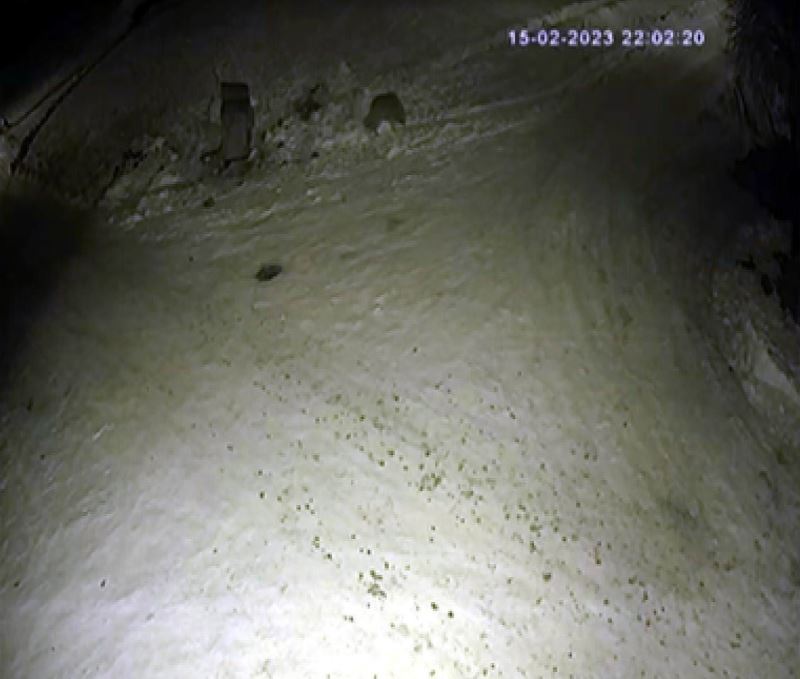 İlçe merkezine inen aç kurt, Yavuz Selim Mahallesi Mithat Bayraktar Sokak üzerinde bir süre yiyecek aradı. Telaşlı bir şekilde çöpün kenarında dolaşan kurt, daha sonra uzaklaştı. O anlar ise güvenlik kamerasına yansıdı.