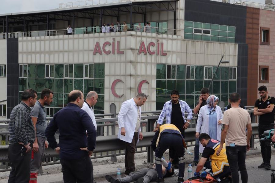 Kayseri’de bir üstgeçitte sürücüsünün direksiyon hakimiyetini kaybettiği otomobil karşı şeride girip bariyere çarptı. Otomobil sürücüsü yaralanırken, kaza yerine yakın olan hastanedeki sağlık çalışanları koşarak yaralıya müdahale etti.