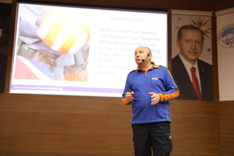 Melikgazi Belediyesi personeli toplumdaki afet bilincini artırmaya yönelik çalışmalar yürüten İçişleri Bakanlığı Afet ve Acil Durum Yönetimi Başkanlığı (AFAD) uzmanlarınca gerçekleştirilen afet eğitimine katıldı.