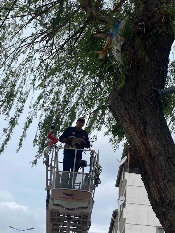 İlçeye bağlı Cumhuriyet mahallesi Toklar caddesi üzerinde bulunan söğüt ağacına çıkan ve günlerdir inemeyen kediyi gören vatandaşlar durumu itfaiye ekiplerine haber verdi. İtfaiye ekipleri tarafından yapılan çalışmada mahsur kalan kedi ağaçtan indirildi.