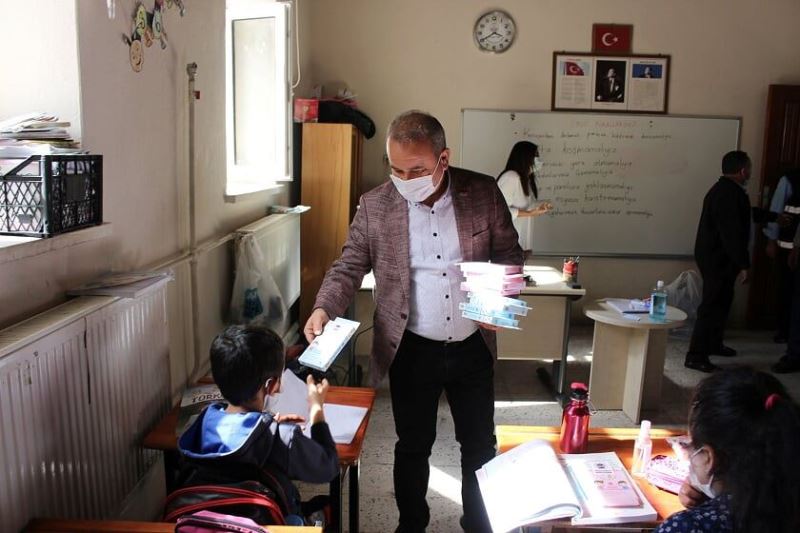 Akkışla Belediye Başkanı Ayhan ARSLAN ilçede bulunan İlkokulları ziyaret ederek dezenfekte edilmiş hijyenik sınıflarda, Maske, Mesafe ve Temizlik kurallarına uygun olarak çocuk maskesi ve çanta dağıtımı gerçekleştirdi.