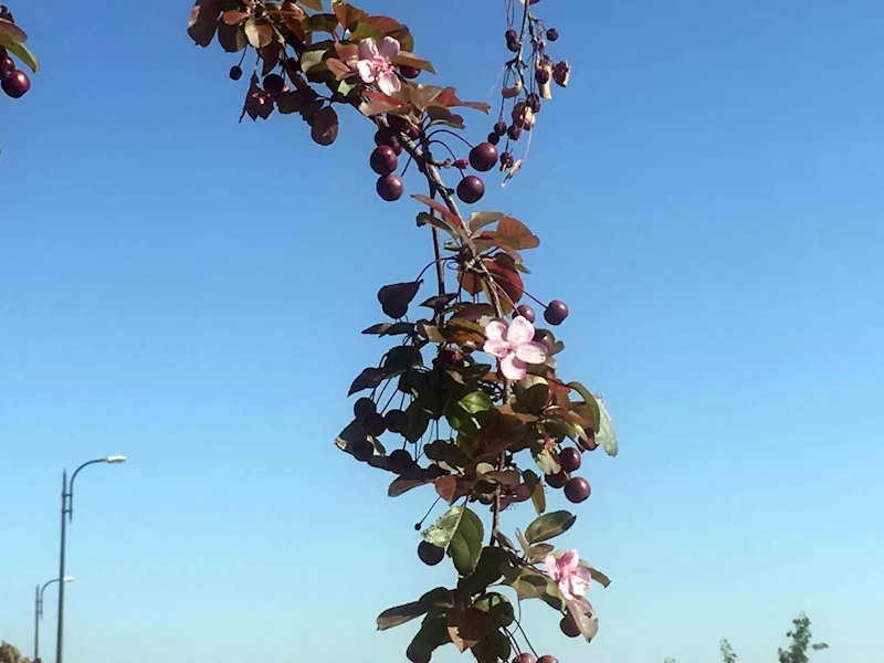 Ali Dağı’ndaki süs elması, meyvesi üstündeyken çiçek açtı