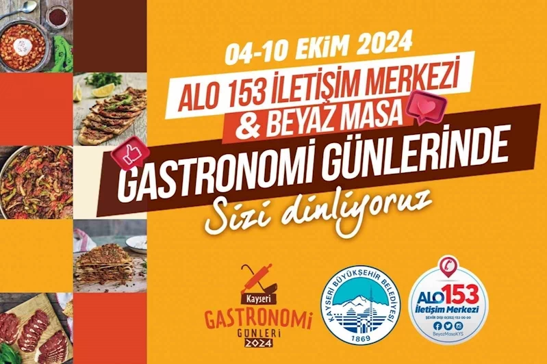 Büyükşehir belediyesi, şehrin farklı noktalarında düzenlenen etkinliklerde Basın, Yayın ve Halkla İlişkiler Daire Başkanlığı bünyesindeki Alo 153 İletişim Merkezi ve Beyaz Masa birimleri ile yerini alarak vatandaşı yerinde dinliyor. Bu çerçevede Alo 153 ve Beyaz Masa, Recep Tayyip Erdoğan Millet Bahçesi’nde 4-10 Ekim günleri arasında gerçekleşecek Kayseri Gastronomi Günleri etkinlik alanında vatandaşa daha kaliteli ve verimli hizmet sunabilmek için stant kurdu.
