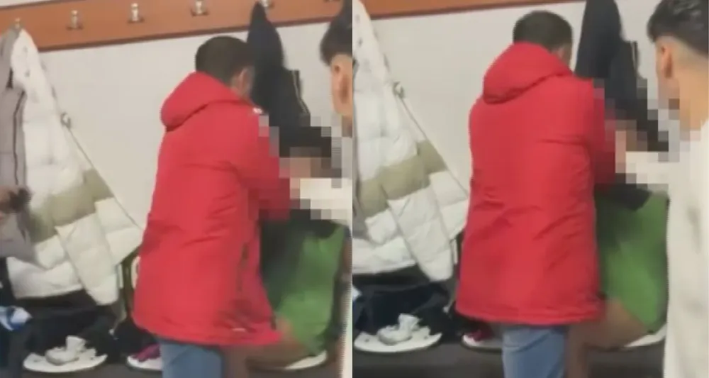 Kayseri’de bir antrenörün soyunma odasında futbolcusuna küfür ederek darp ettiği anlar tepki topladı.