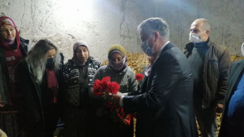 8 Mart Dünya Emekçi Kadınlar Günü nedeniyle dünyanın dört bir yanında değişik etkinlikler düzenlenirken CHP Kayseri Milletvekili Çetin Arık, farklı bir etkinliğe imza attı. Yeşilhisar’da patates üreticilerinin sorunu yerinde incelemek için Yeşilhisar’ın mahallelerini ziyaret eden Arık, burada patates deposunda patates ayıklayan ve çuvallayan kadınların Dünya Emekçi Kadınlar Gününü kutlayarak, kadınlara karanfil hediye etti. Yaşadıkları sürpriz karşısında şaşıran kadınlar Milletvekili Arık’a teşekkür ederken, Arık her şeyin kadınların eseri olduğunu belirterek, emekçi kadınların gününü kutladı.(kurum haberi)