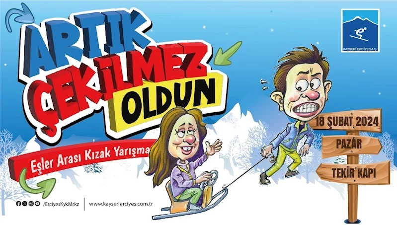 Kış sezonu boyunca birbirinden farklı aktivitelere ev sahipliği yaparak misafirlerine keyifli anlar yaşatan Erciyes, şimdi de çiftleri pistlere çıkaracak. Erciyes A.Ş. tarafından düzenlenen yarışmada çiftler önce kızakla birbirlerini çekecek, daha sonra hiç ara vermeden, yukarıdan aşağı doğru birlikte kızakla kayarak bitiş noktasına varmak için mücadele edecek. Yarışmada dereceye girenlere sponsorlar tarafından çeşitli ödüller verilecek. Heyecan, spor ve eğlencenin bir arada yaşanacağı “Artık Çekilmez Oldun” eşler arası kızak yarışmasında çiftler yarış etabını en hızlı şekilde tamamlamaya çalışacaklar. 18 Şubat 2024 Pazar günü saat 12.00’de Erciyes Tekir Kapı bölgesinde düzenlenecek Artık Çekilmez Oldun Kızak Yarışması’na katılmak isteyen çiftler www.kayserierciyes.com.tr web sayfasından online kayıt işlemlerini yapabilecekler.