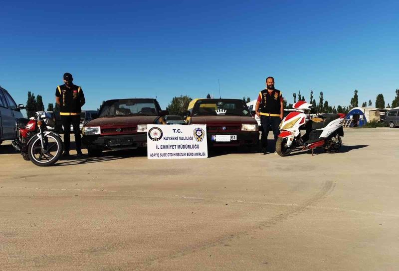 Kayseri İl Emniyet Müdürlüğü Asayiş Şube Müdürlüğüne bağlı Oto Hırsızlık Büro Amirliği ekiplerince, kentte meydana gelen oto hırsızlıklarıyla ilgili yapılan çalışmalarda 2’si motosiklet 5 çalıntı araç bulundu. Araçların çalınma anları güvenlik kameralarınca kaydedilirken, polis olayın faillerine 600 saatlik kamera kaydı inceleyerek ulaştı.