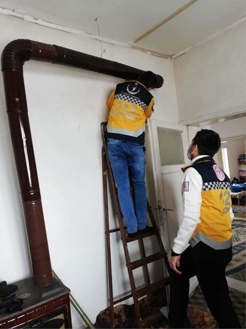 Kayseri İl Sağlık Müdürlüğü’ne bağlı 112 ekipleri, Covid-19 aşısı yapmak için gittiği yaşlı ve yatalak bir hastanın evine soba kurdu.