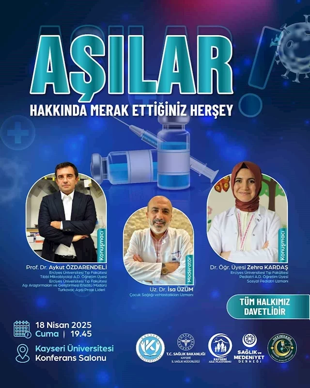 Kayseri Üniversitesi, Erciyes Üniversitesi, T.C. Sağlık Bakanlığı Kayseri İl Sağlık Müdürlüğü, Kayseri Aile Platformu, Sağlık ve Medeniyet Derneği ile Hekimhane Derneği iş birliğiyle düzenlenen etkinlikte; aşıların tarihçesinden etkilerine, çocukluk çağı aşılarından pandemide geliştirilen aşılara kadar pek çok başlık ele alınacak.