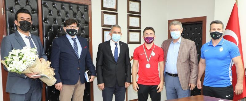Şampiyonadan döner dönmez Kayseri Şekerspor Onursal Başkanı Hüseyin Akay’ı ziyaret eden Kulüp Başkanı İbrahim Dayı, Güreş Şube Sorumlusu İnanç Kızılyazı, Antrenör İlker Genel, Kulüp Müdürü Mustafa Karahançer ve Salih Yusuf Yazıcı, mutluluklarını Başkan Akay ile paylaştı. Yaşadığı mutluluğu Başkan Akay’a sarılarak kutlayan başarılı sporcu Salih Yusuf Yazıcı, Kayseri Şekerspor ailesinin bir ferdi olmaktan gurur duyduğunu belirterek, yeni şampiyonalarda yeni madalyalar kazanmak için çok daha fazla çalışacağını söyledi.