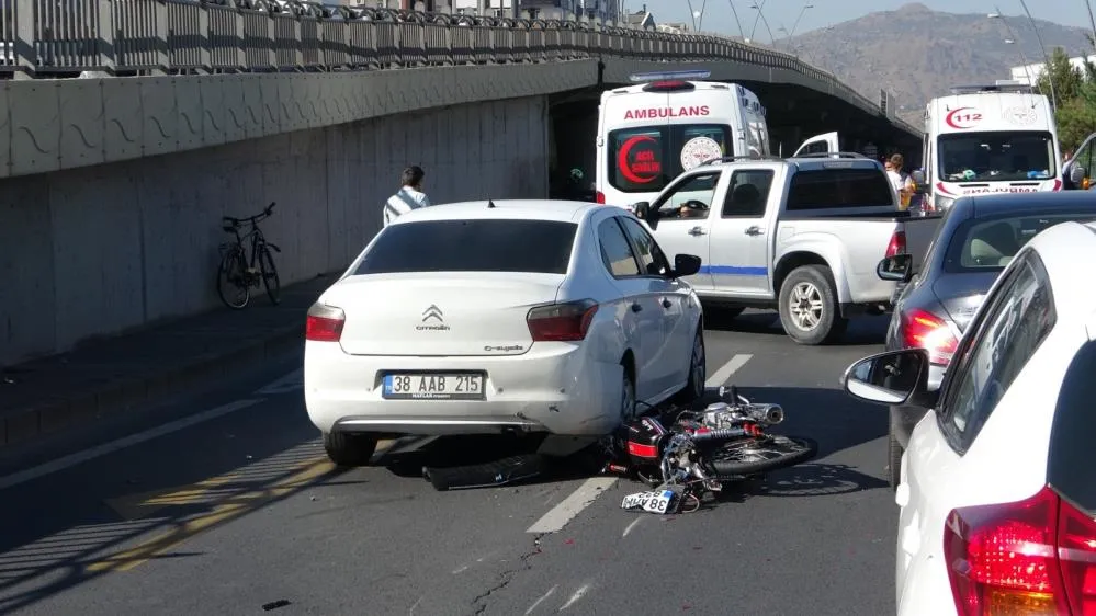 İlçeye bağlı Mevlana Mahallesi Kocasinan Bulvarı üzerinde meydana gelen kazada; 38 PP 240 plakalı minibüs, bisikletli şahsa çarptı. Bu sırada kazayı görerek duran 38 AAB 215 plakalı otomobile ise arkadan seyreden 38 AHM 832 plakalı motosiklet girdi. Kazalarda bisiklet ve motosiklet sürücüsü yaralanırken, ihbar üzerine bölgeye polis ve sağlık ekipleri sevk edildi. Polis ekipleri kazanın meydana geldiği yolda güvenlik önlemi alarak yolu trafiğe kapattı. Yaralı 2 kişi de ambulanslar ile hastaneye kaldırıldı. Kazaya karışan bisiklet ve motosiklet de çekici ile kaldırıldı. Kaza nedeniyle trafiğe kapatılan bulvar üzerinde de trafik yoğunluğu yaşandı.