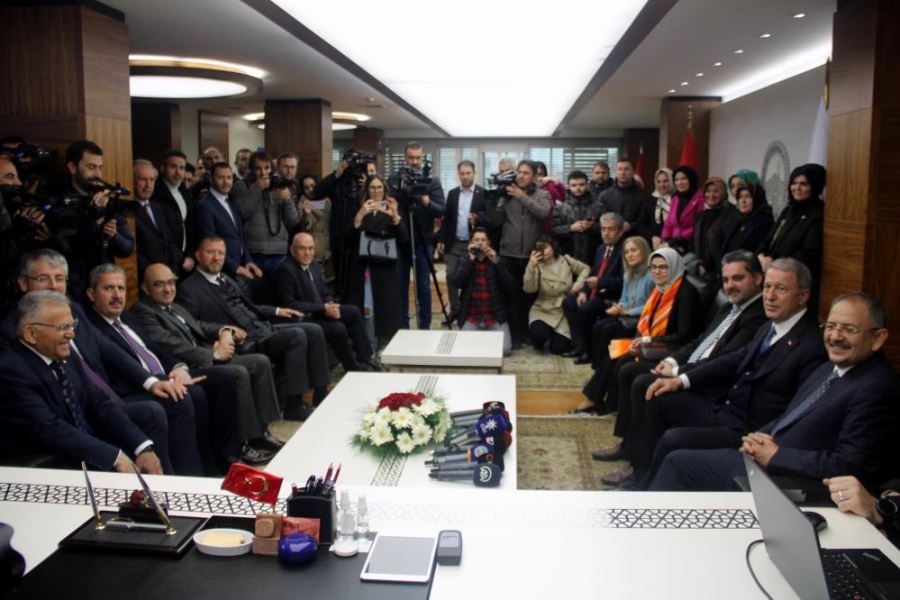 Seçim çalışmaları çerçevesinde Kayseri’de bulunan ve Kayseri Büyükşehir Belediyesini ziyaret eden Milli Savunma Bakanı Hulusi Akar; burada Büyükşehir Belediye Başkanı Memduh Büyükkılıç tarafından karşılandı. Ziyarette gazetecilere açıklamalarda bulunan Bakan Akar, ülkenin deprem ve terörle mücadele ettiğini ve bu mücadelelerde oldukça başarılı olduğunu kaydetti. 6 Şubat’ta Kahramanmaraş merkezli meydana gelen depremlerin ardından Türk Silahlı Kuvvetleri’nin tüm imkanlarıyla vatandaşın yanında olduğunun altını çizen Bakan Akar, "Türkiyemiz hepimizin bildiği gibi büyük bir mücadelenin içinde. Bir tarafta terörle mücadele, diğer tarafta depremle mücadele. Bu konularda gerçekten Türkiye olarak başarılı olduğumuzu, çok mesafeler kat ettiğimizi tüm dünya gördü. 6 Şubat’ta yaşadığımız büyük bir deprem felaketi var, asırlardır gördüğümüz en büyük felaket. Bu felakete karşı başta cumhurbaşkanımız olmak üzere devletimiz, il andan itibaren gerekli tedbirleri aldı ve vatandaşlarımızın yanına koştu. 81 ilde 85 milyon vatandaşımız da devletimizin yanına koştu. Dolayısıyla karşılıklı işbirliği içerisinde, omuz omuza, elbirliği ile yaraları sarmak için mücadeleyi başlattık ve devam ediyor. Bu mücadele devem ederken bu milletin bağrından çıkan, aynı zamanda ’peygamber ocağı’ olarak bilinen Türk silahlı Kuvvetleri; depremin ilk anından değil ilk saniyeden itibaren vatandaşın yanındaydı. Bunu bazı görmeyenler, duymayanlar var, tüm fotoğraflara ve videolara rağmen bazıları tekrar tekrar gündeme getiriyorlar. Gerçekleri yansıtmıyor, bunun bilinmesi lazım. Mehmetçik; neyi var neyi yok kara kuvvetlerimiz, deniz kuvvetlerimiz, hava kuvvetlerimiz tüm imkanları seferber ettik ve vatandaşımızla beraber mücadeleyi sürdürüyoruz. Çok şükür başlangıçta arama ve kurtarma faaliyetleri, daha sonra barınma ve iaşe faaliyetleri, hava kuvvetlerimiz havada, deniz kuvvetlerimiz denizde her türlü ulaştırmayı sağlamak suretiyle büyük bir mücadele içindeyiz. Mehmetçik her zaman olduğu gibi bağrından çıktığı milletin daima yanındadır, bunu bilelim" dedi.
