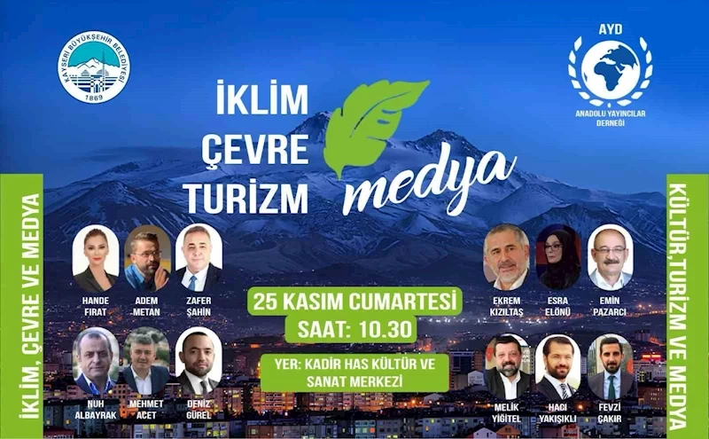 Büyükşehir Belediyesi destekleri ile 25 Kasım Cumartesi günü saat 10.30’da Kadir Has Kültür ve Sanat Merkezi’nde gerçekleşecek konferansta birbirinden ünlü gazeteci yazarlar konuk olacak. Çevre, Şehircilik ve İklim Değişikliği Bakanı Mehmet Özhaseki’nin de konferansta bakanlık çalışmalarıyla ilgili değerlendirmelerde bulunması bekleniyor. Gazeteci yazarlardan Hande Fırat, Adem Metan, Zafer Şahin, Nuh Albayrak, Mehmet Acet ve Deniz Gürel’in iklim ve çevre konularını medya düşüncesiyle ele alacağı konferansta, Ekrem Kızıltaş, Esra Elönü, Emin Pazarcı, Melik Yiğitel, Hacı Yakışıklı ve Fevzi Çakır da kültür ve turizm konularını medya düşüncesi ve Kayseri istikametinde masaya yatıracak.