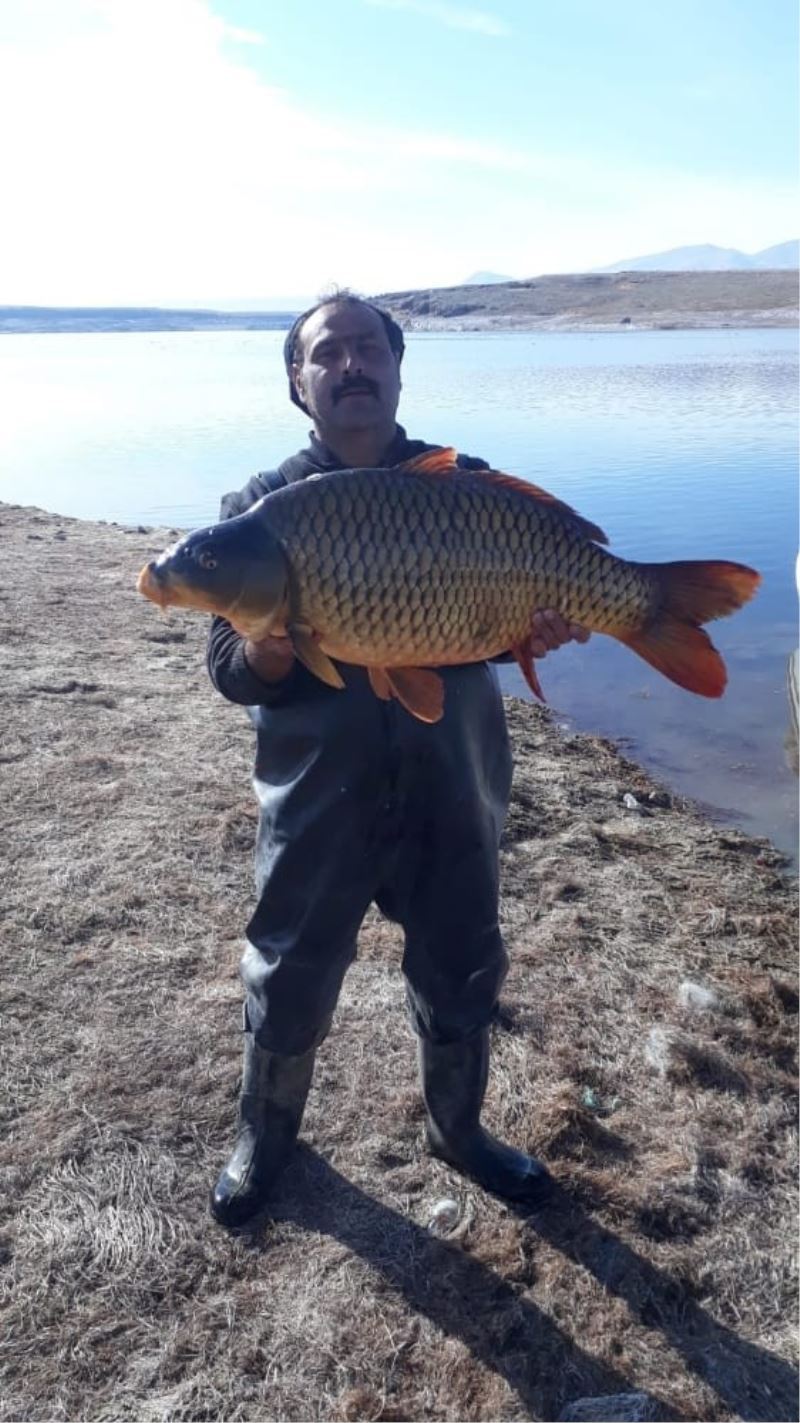 Kayseri’deki Gümüşören baraj gölünde avlanan köylüler, 150 santim uzunluğunda balık yakaladı.