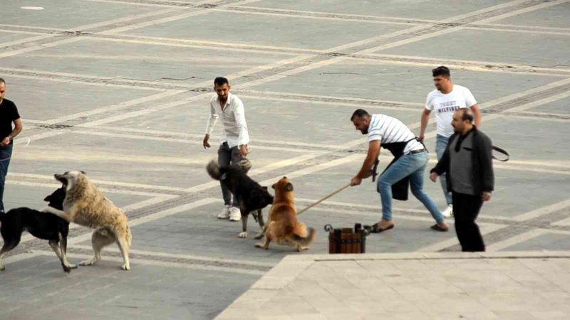 Kayseri’nin Develi ilçesinde başıboş köpeklerin kavgasını ayırmak için vatandaşlar seferber oldu. O anlar kameralarca kaydedildi.