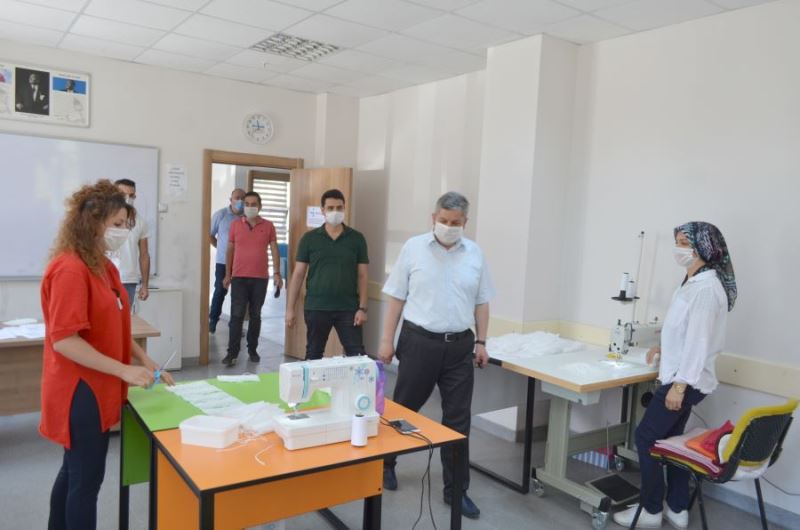 Başkan Altun, maske dikim kursunu ziyaret etti