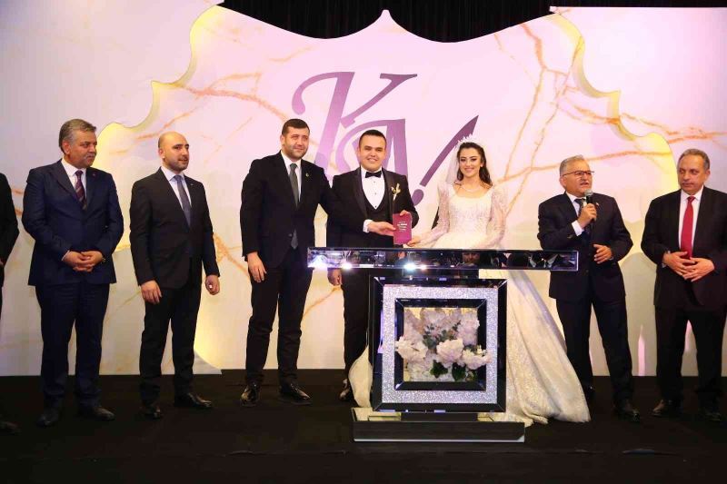 Düğün töreninde genç çiftin ailesi ve sevenlerinin yanında iş, siyaset ve sivil toplum dünyasından davetliler bir araya geldi. Kübranur ve Mustafa Bağlamış çiftinin nikahlarını Büyükşehir Belediye Başkanı Dr. Memduh Büyükkılıç kıydı. Çiftin nikah şahitleri; MHP Kayseri Milletvekili Baki Ersoy, Kayseri Barosu Başkanı Ali Köse, siyasi parti temsilcileri, Kayseri Ticaret Borsası Yönetim Kurulu Başkanı Recep Bağlamış, İl Tarım Orman Müdürü Mustafa Şahin, Talas Belediye Başkanı Mustafa Yalçın, Pınarbaşı Belediye Başkanı Menduh Uzunluoğlu, Sarıoğlan Belediye Başkanı Bekir Ayyıldırım oldu. Büyükşehir Belediye Başkanı Memduh Büyükkılıç’ın sorularını yanıtlayan Kübranur- Mustafa Bağlamış çifti mutluluğa ’Evet’ dedi. Nikah cüzdanını MHP Kayseri Milletvekili Baki Ersoy Kübranur Bağlamış’a verdi. Törende duygularını ifade eden Kayseri Ticaret Borsası Yönetim Kurulu Başkanı Recep Bağlamış; “Bu mutlu günümüzde bizleri yalnız bırakmayan kıymetli protokolümüze, değerli misafirlerimize çok teşekkür ediyorum. Çok değer verdiğim yeğenim ve kıymetli eşine çıktıkları bu kutlu yolda sevgi ve saygı içerisinde sağlıklı bir ömür sürmeleri temennisiyle iki cihan saadeti dilerim” dedi.