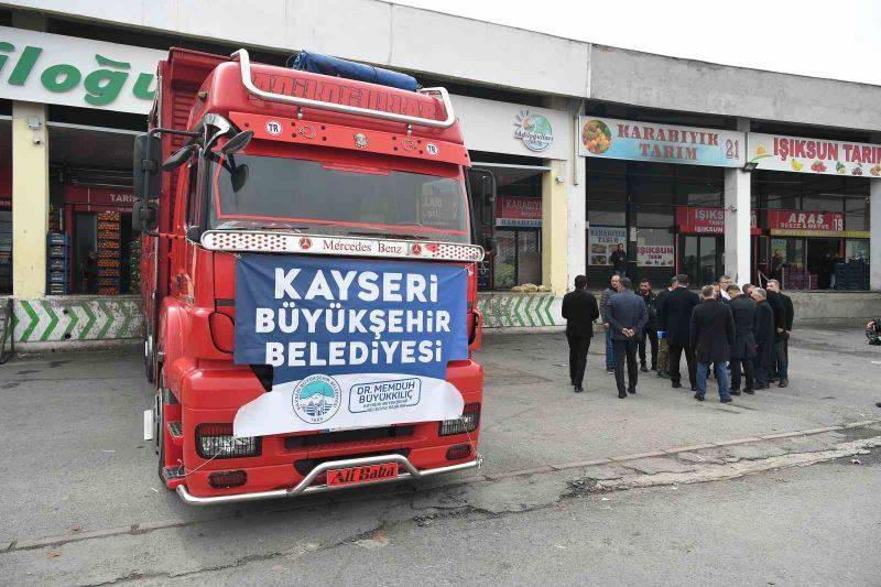 Daha sonra Büyükkılıç, Kayseri Hali’nden 2 kamyon yardım tırını deprem bölgesi Adıyaman’a uğurladı.