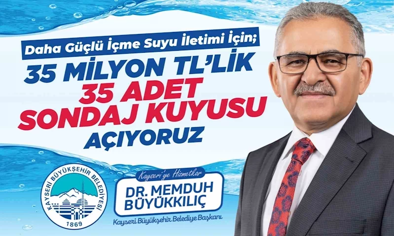 Kayseri Büyükşehir Belediye Başkanı Dr. Memduh Büyükkılıç, kent genelinde içme suyu iletimini güçlendirmek için planlanan ve toplam maliyeti 35 milyon TL olan 35 adet sondaj kuyusu açılacağını ifade etti.