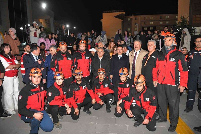 Kayseri Büyükşehir Belediye Başkanı Dr. Memduh Büyükkılıç, Vali Gökmen Çiçek ile birlikte KYK Melikgazi Kız Öğrenci Yurdu’nda düzenlenen ‘Çök-Kapan-Tutun Tahliye Tatbikatı’na katılarak, öğrencilerle birlikte deprem anında yapılması gerekenler adına tatbikat gerçekleştirdi.