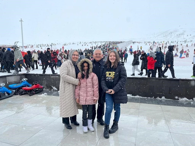 Lapa lapa yağan karın, muhteşem manzaranın, yoğun ve coşkulu ziyaretçilerin yer aldığı Erciyes Kayak Merkezi’nde olmaktan duyduğu memnuniyeti ifade eden Büyükkılıç, “Böylesine güzel bir pazar gününde kıymetli eşim Dr. Necmiye Hanım ve sevgili torunlarım Beyza ve Berra ile Erciyes’imizi ziyaret ederek, yoğun ve coşkulu ziyaretçilerin, muhteşem manzaranın ve lapa lapa yağan bereketin tadını doyasıya yaşadık” diyerek, herkesi Erciyes’e davet etti.