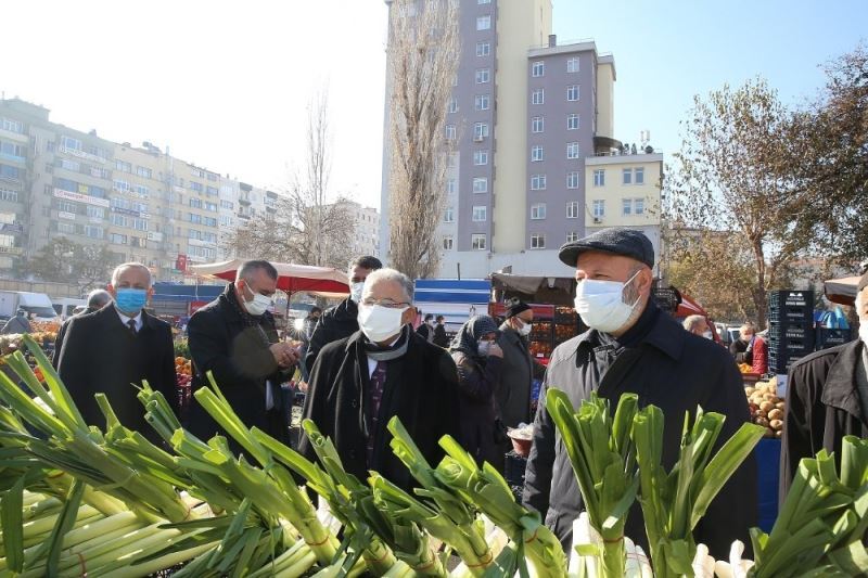 Sahabiye Semt Pazarı ile esnafları ziyaret edip, Pandemi tedbirlerini ve uygulamaları yerinde inceleyen Kayseri Büyükşehir Belediye Başkanı Dr. Memduh Büyükkılıç, “Vatandaşlarımız ve esnafımız tavsiyelere uyan, hiçbir zaman sorun çıkarmayan ve sorun çözen yaklaşım içerisinde. Kayserimizi koruyacağız, insanımızı koruyacağız. İnsanı yaşat ki devlet yaşasın felsefesiyle bu korona hastalığını hep beraber yok edeceğiz” dedi.