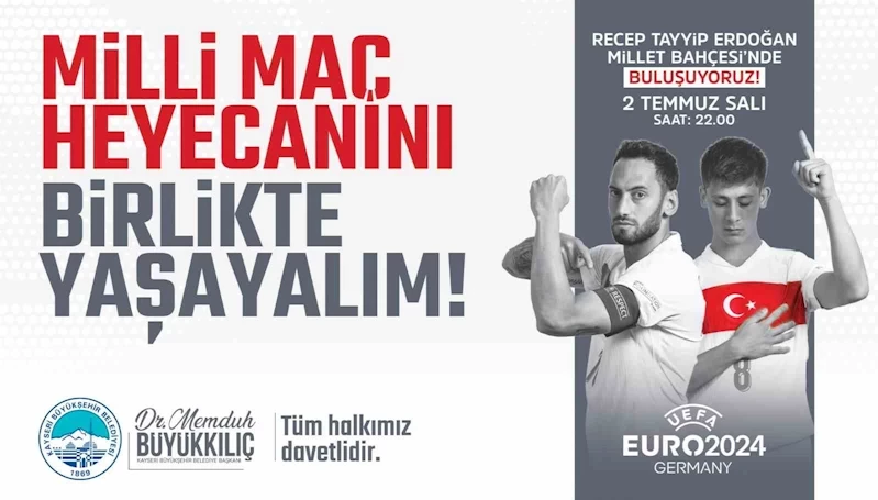 Büyükkılıç, tüm Kayserilileri milli gurur ve heyecanı yaşamak için Millet Bahçesi’ne davet ederek, “2 Temmuz Salı günü saat 22.00’de oynanacak milli maçımızı Millet Bahçemizde, Büyükşehir Belediyemiz tarafından hazırlanacak dev ekranda izlemeye ve tek yürek olmaya davet ediyoruz” diye konuştu.