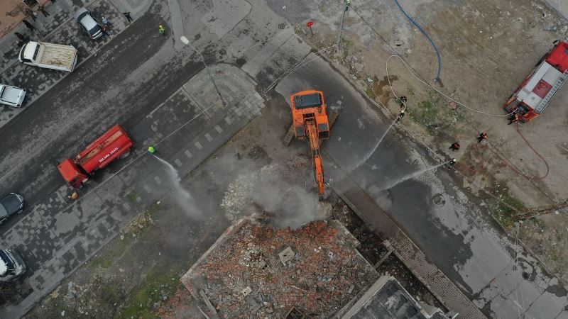 Uzlaşma sağlanan 86 binanın yıkım çalışmaları güvenlik önlemleri altında yürütülüyor. İtfaiye aracından yıkım sonuçlanıncaya kadar su sıkılacak ve yıkım anındaki tozun çevreye yayılması önlenecek. Deprem yönetmeliğine uygunluğu olmayan 1951, 1955 ve 1979 yapımı olan ve çürük raporları yer alan binalar belirlenen takvim içerisinde yıkılacak.