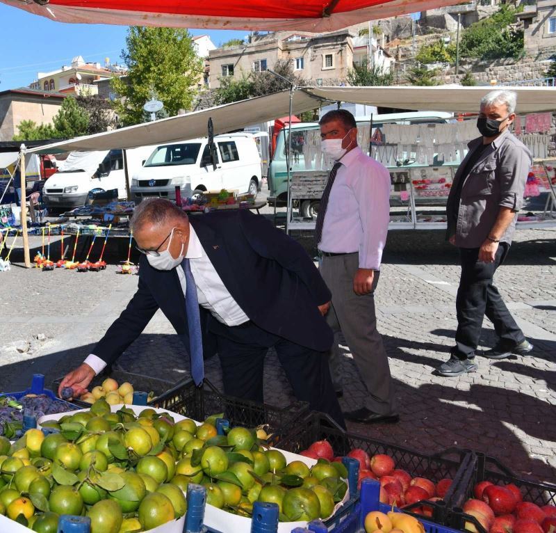 Başkan Büyükkılıç, Mimarsinan Kapalı Semt Pazar Yeri’nde esnafları ziyaret ederek, bereketli işler diledi. Ahi ahlakı ile ahlaklanmış olan esnaflara talep ve istekleri olup olmadığını soran ve pandemi kurallarını hatırlatan Büyükkılıç, pazarda fiyatların makul, ürünlerin kaliteli olduğunu vurgulayarak, pazar esnafına teşekkür etti. Başkan Büyükkılıç, gilaburu satan esnaf ile de sohbet ederek, bir doktor olarak sonbahar mevsiminde hasadı yapılan gilaburunun faydalarından bahsederek, şifa niyetine satıldığını söyledi. Fotoğraf çektirmek isteyen esnaf ve vatandaşları da kırmayan Başkan Büyükkılıç, sosyal mesafe kuralları çerçevesinde vatandaşlarla hem öz çekim yaptı, hem de hatıra fotoğrafı çektirdi.
