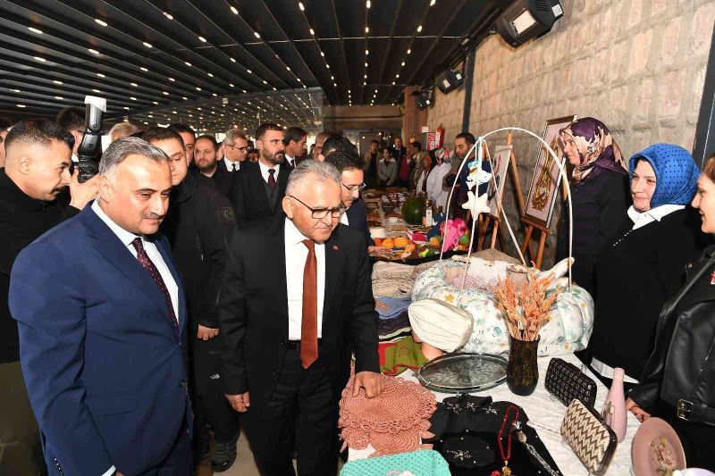 Ayrıca, Başkan Büyükkılıç ve Vali Çiçek, Develi Kadın Girişimi Üretim ve İşletme Kooperatifi tarafından kurulan standı gezerek, kadınların el emeği eserlerini inceledi.