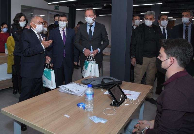 Kütüphanelere HES kodu ile girildiğini, kitapların dezenfekte edildiğini hatırlatan Büyükkılıç, “Merkezdeki kütüphanemizin yetmediğini ve ihtiyaca cevap vermek için ilave yaptığımızı biliyorsunuz. Kayseri Büyükşehir Belediyesi kontrolünde olan 7 tane kütüphanemiz var. Bakanlığımız ile beraber yeni bir kütüphanemiz var, onu da hayata geçireceğiz. Okuyan, öğrenen ya da öğreten olma ilkesi ile âlimler şehri olarak bilinen Kayseri’mizi sevgili gençlerimizi daha iyi noktaya taşımak için bu gayretlerimizi bu çabalarımızı sürdürüyoruz” ifadelerini kullandı.