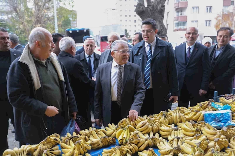 Kayseri Büyükşehir Belediye Başkanı Dr. Memduh Büyükkılıç, Melikgazi ilçesi Hürriyet Mahallesi’ndeki pazar yerini ziyaret ederek, alışveriş yapan vatandaşlarla ve pazarcı esnafı ile sohbet etti.