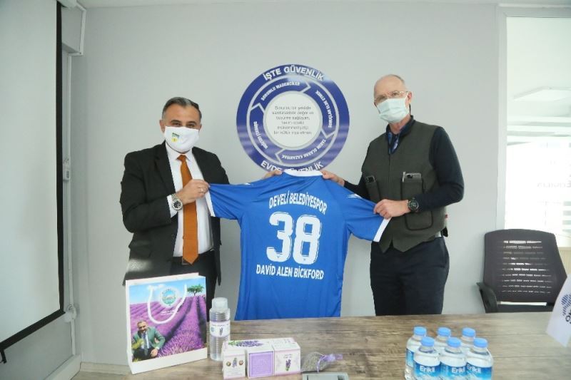 Öksüt Madencilik CEO’su David Alen Bickford ve Öksüt Madencilik Halkla İlişkiler Müdürü Olgun Otyakmaz ile bir araya gelen Başkan Cabbar, Develi’ye ve voleybol takımına yapmış oldukları desteklerden dolayı teşekkürlerini ileterek Öksüt Madencilik CEO’su David Alen Bickford’ın adının yazılı olduğu takım forması ve Develi Belediyesinin bu yıl ilk ürünü olan lavanta kolonyası ve lavanta sabunlarından hediye etti. Nazik ziyaretlerinden dolayı Cabbar Başkana teşekkürlerini ileten Öksüt Madencilik yetkilileri pla-yoff mücadelelerinde de voleybol takımına başarılar dilediklerini ve Develi için destek olmaya devam edeceklerini belirttiler.