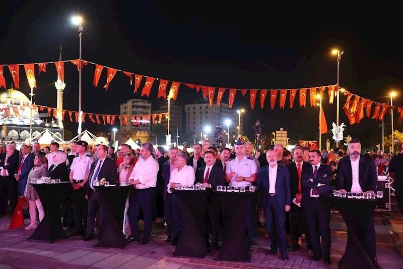 “Bin yıldır bu toprakları bizlere vatan yapan aziz milletimiz; Malazgirt’te, Çanakkale’de, Sakarya’da ve Dumlupınar’da kadını, erkeği, genci, yaşlısı ile düşmana nasıl dur demiş ise 15 Temmuz gecesi de aynı ruh hali ve duygu seli ile düşmanlara, vatan hainlerine dur dedi. Bizler bu vatanın öz evlatları olarak vatanımızı çiğnetmemek, bayrağımızı indirtmemek, ezanımızı dindirtmemek için birlik ve beraberlik içerisinde dün olduğu gibi bugünde dimdik ayakta duracağız. Sayın Cumhurbaşkanı’mızın dediği gibi; ‘İri olacağız, diri olacağız ve hep beraber Türkiye olacağız.”