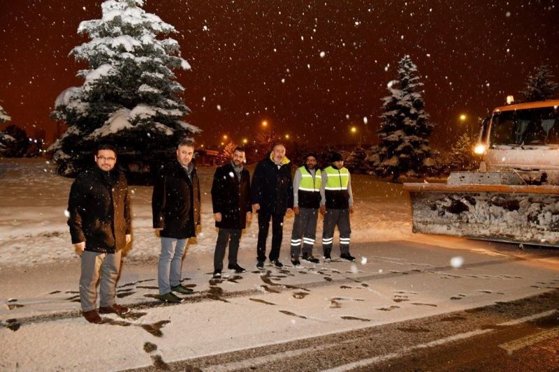 Son günlerde etkili olan kar yağışının ulaşımı ve dolayısıyla üretimi aksatmaması için Kayseri Organize Sanayi Bölge Müdürlüğü ekipleri kesintisiz çalışmaya devam ediyor. Bölge genelindeki yollarda sürekli olarak kar temizleme ve tuzlama çalışması yapan ekipleri gece geç saatlerde Kayseri Organize Sanayi Bölgesi Yönetim Kurulu Başkanı Yunus İmamoğlu ve Yönetim Kurulu Üyesi Şaban Andaç ziyaret etti. Kayseri OSB Bölge Müdürü Fatih Gözel ile Fen İşleri Müdürü Abdullah Deneyen’in de yer aldığı ziyarette sıfırın altındaki hava sıcaklığına rağmen çalışan ekiplere tatlı ikram edildi.