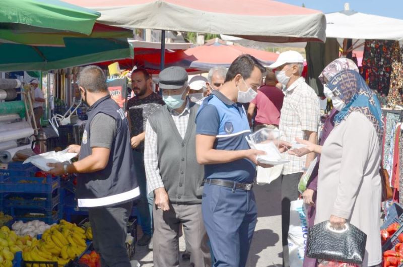 Bünyan Belediyesi Zabıta Müdürlüğü ekipleri ilçede kurulan pazarlarda denetim ve ücretsiz maske dağıtımına devam ederken, Bünyan Belediye Başkanı Özkan Altun," Maske, mesafe ve temizlik olmazsa olmazımız" dedi.