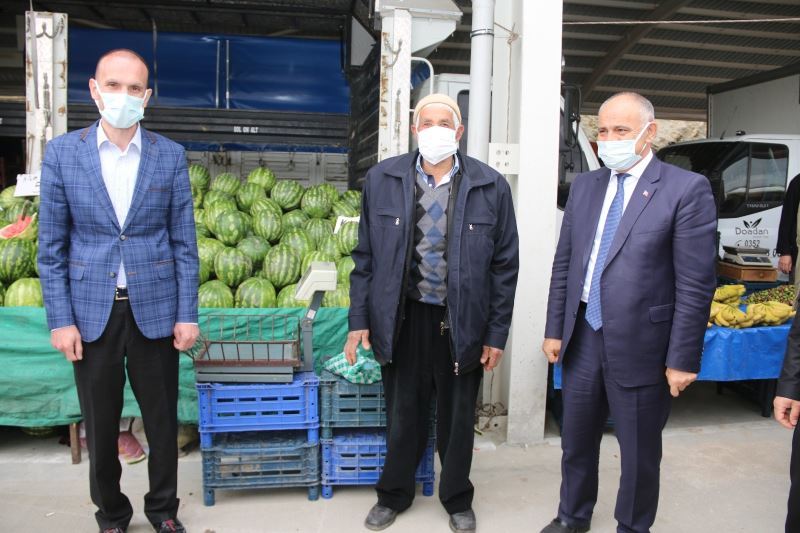 Kaymakam Yunus Emre Altıner, Başkan Esat Öztürk ve beraberindekiler kapalı semt pazarında denetim yaptılar, tedbirlere uymayanlara uyarıda bulundular. Ayrıca maskesi olmayan vatandaşlara maske dağıtımı yaptılar.