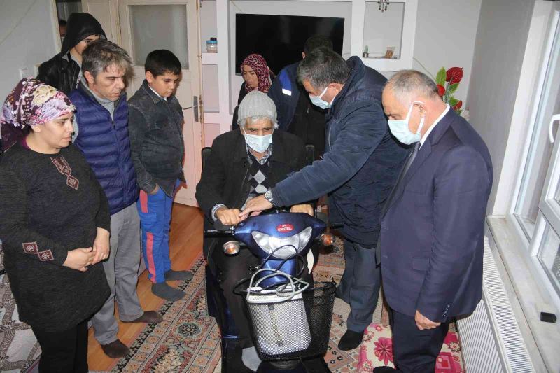 Yahyalı Belediye Başkanı Esat Öztürk, aracı olmadığı için 2 yıldır evinden çıkamayan engelli bir vatandaşa kandil günü akülü araç hediye etti.