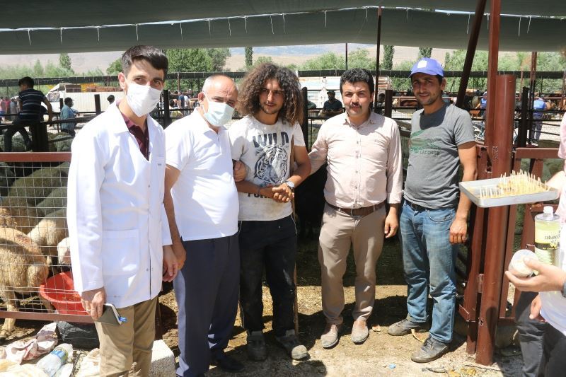 Kurban Pazarına belediye birim müdürleri ve personelleriyle gelen Başkan Esat Öztürk, pazarda kurbanlık alım ve satımı yapan vatandaşların arefe ve bayramlarını kutladı, hayırlı alışverişler diledi ve onlara tatlı ikramında bulundu.