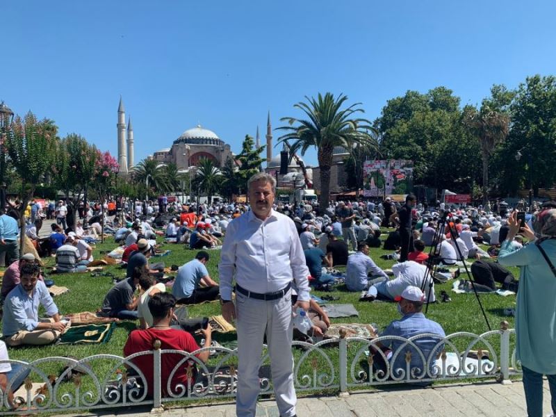Sultan Ahmet Meydanı’nda namaz öncesi bir açıklama yapan Başkan Dr. Palancıoğlu, “Bugün Sultan Ahmet Meydanı’nda Ayasofya-i Kebir Cami-i Şerifi’ndeyiz. Uzun hasretten sonra, bugün vuslat günü. Ayasofya bugün Kur’an sesleri, ilk Cuma namazı için sabırsızlanan yürekler ile doldu. Burada bugün Cuma namazımızı kılarak açılışa şahitlik edeceğiz. Rabbim Cumhurbaşkanımız olmak üzere emeği geçen herkesten razı olsun. 86 yıldır boynu bükük olan Ayasofya bugün Cuma namazı ile tarihi güne tanıklık edecek ve bizde buna şahit olmaktan oldukça gururluyuz, mutluyuz. Tekrar inşallah cami olarak işlevini devam ettirecek. Rabbim ülkemizi her zaman payidar etsin. Hayırlı olmasını dilerim.” dedi. (İHA) -