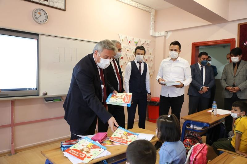 Öğrencilerin heyecanına ortak olan Başkan Dr. Mustafa Palancıoğlu, sınıfları gezerek öğrencilere Melikgazi Belediyesi’nin “Biz Virüsten Güçlüyüz” ve “Şibidik ile Epelek Şehrimizi Geziyor” adlı çocuk yayınlarını hediye etti.