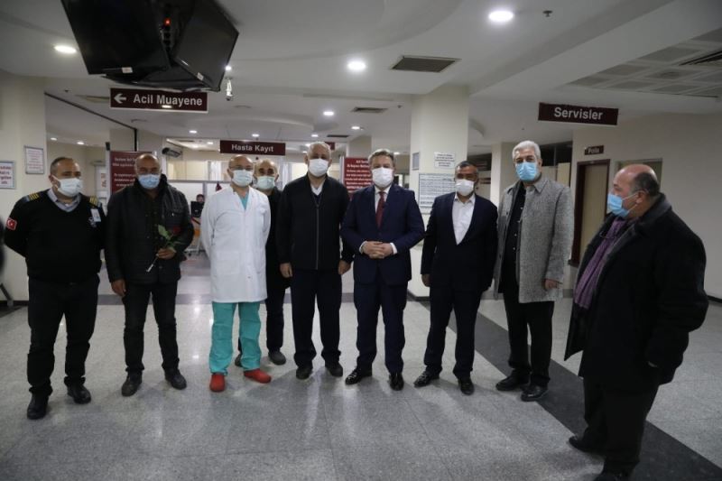 Acilde görevi başında olan sağlık çalışanlarına kolaylıklar dileyen Başkan Dr. Palancıoğlu, sağlıkçılara karanfil hediye etti.