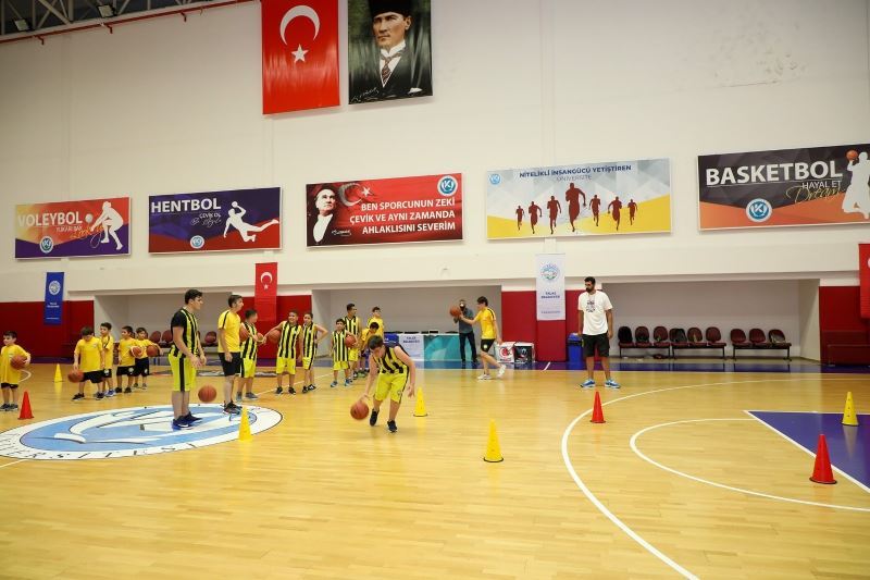 Talas Belediye Başkanı Mustafa Yalçın, Kayseri Üniversitesi Rektörü Prof. Dr. Kurtuluş Karamustafa ile birlikte Sporcu Fabrikası Yaz Etkinliklerine katılan basketbolcu adaylarıyla bir araya geldi.