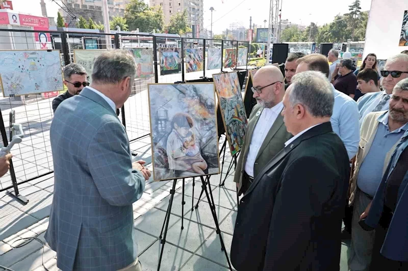 Kayseri’de Talas Belediyesi tarafından düzenlenen ‘Gazzeli Çocuklar Uluslararası Resim Sergisi’ açıldı. Talas Belediye Başkanı Mustafa Yalçın, “Gazze’de eli yüzü yaralı çocukları defalarca gördüğümüz tablolar var” dedi.